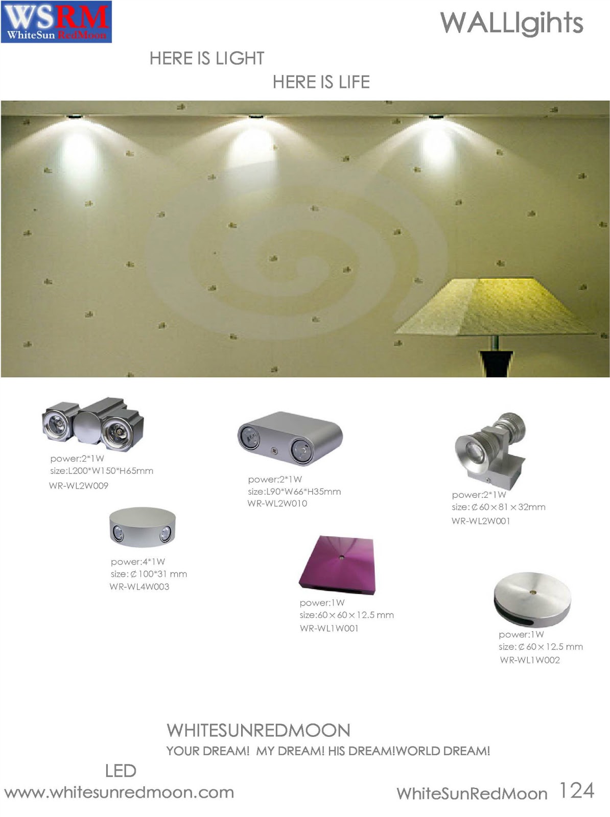 WSRM---LED WALLlights designed in Small beautiful appearance, or square or round, high-quality aluminum alloy shell metallic different perfect streamlined designs, spiritual expression, silver or purple appearance, precision production; lamp four weeks left small trough, the light from the beautiful light emission in vivo by small groove shed, the danger of soft warm feeling, highlight elegant, adding quality of life.